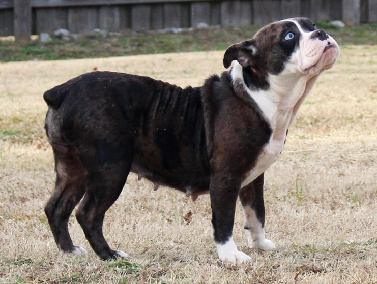 Melody is deeply rooted in her modern bulldogge genetics boasting traits that challenge the eye to define the difference in English vs Olde English yet superior to the former in health. A natural protector of the family and a natural born to be mother disposition, she is a true staple here at All-Stars. View Stats